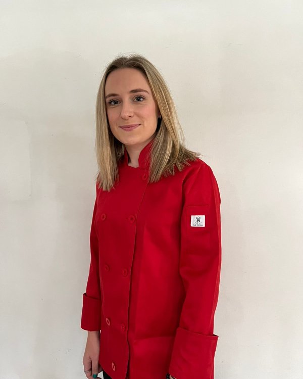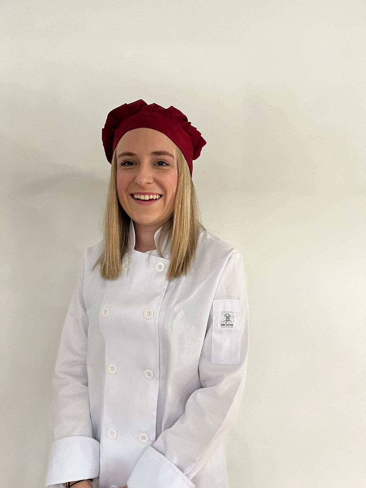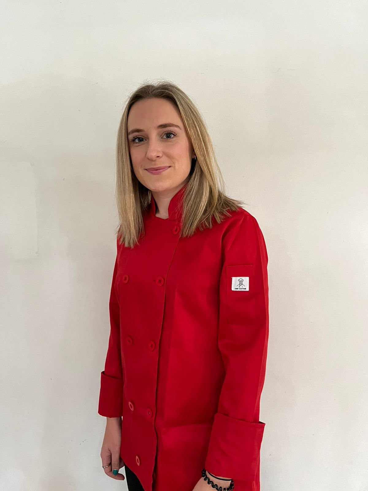 Classic original style…double breast button down. Long sleeved – 1 left arm pocket. Durable, hard wearing, minimal creasing ..perfect touch to manifesting your perfect dishes.