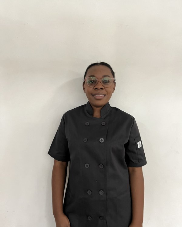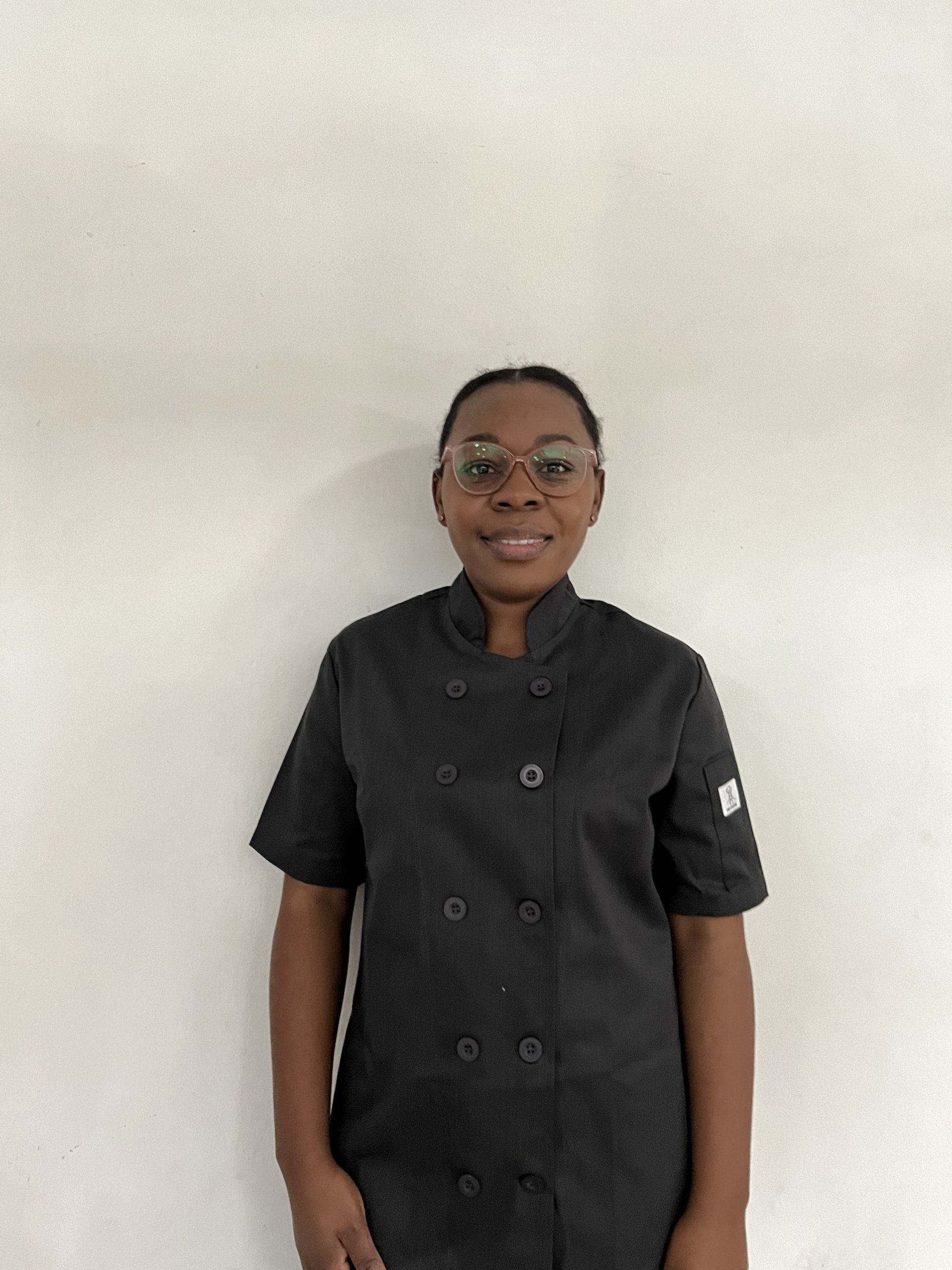Classic original style…double breast button down. Short sleeved – 1 left arm pocket. Durable, hard wearing, minimal creasing ..perfect touch to manifesting your perfect dishes.